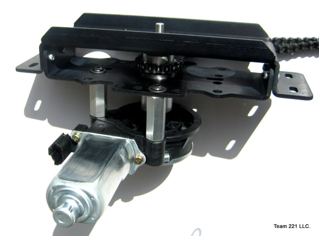 The motor mount plate supports both FIRST kit window motors from the past few seasons and the kit globe motor when using the optional adapter plate. Motor interface to the input shaft is not provided.